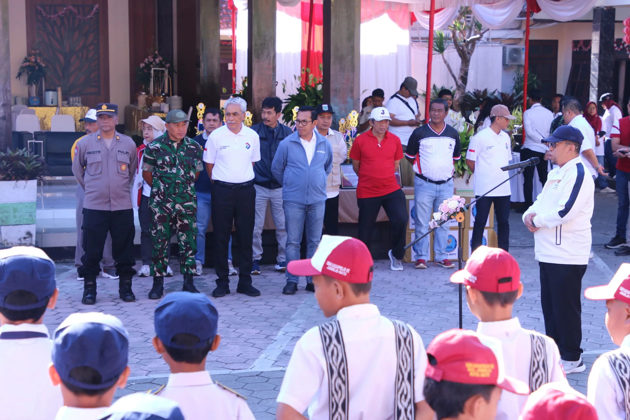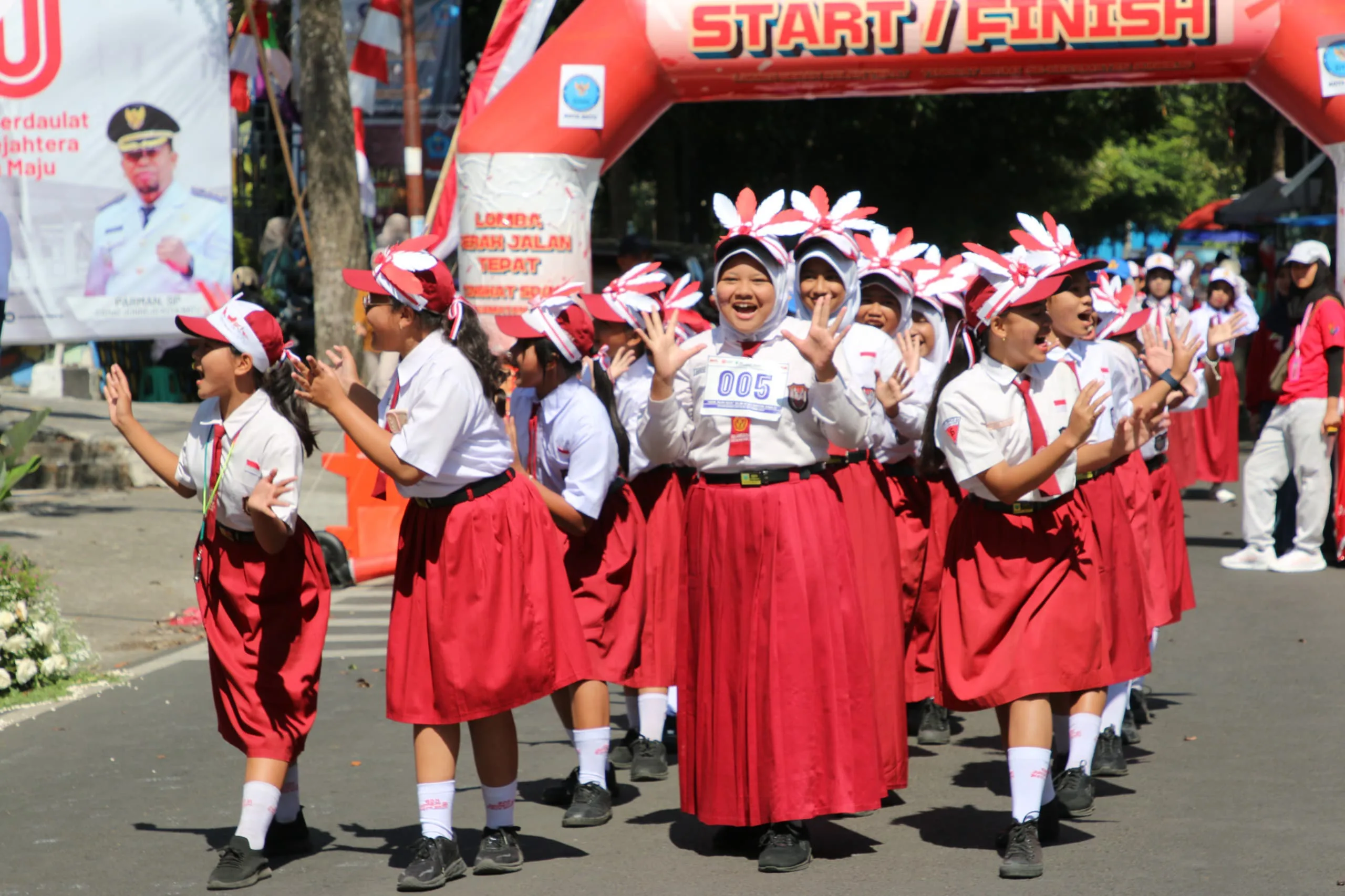 IDEA JATIM, KOTA BATUWali Kota Batu, Nurochman, memberangkatkan secara resmi Lomba Gerak Jalan Tepat Tingkat SD/MI se-Kecamatan Junrejo yang digelar dalam rangka memperingati HUT ke-80 Kemerdekaan Republik Indonesia, yang mengambil start di depan kantor Kecamatan Junrejo, Rabu (27/8/2025).
