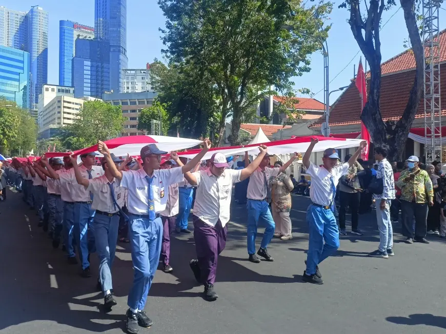 Bendera Merah Putih 14,9 Km Karya Pelajar di Jatim Pecahkan Rekor MURI