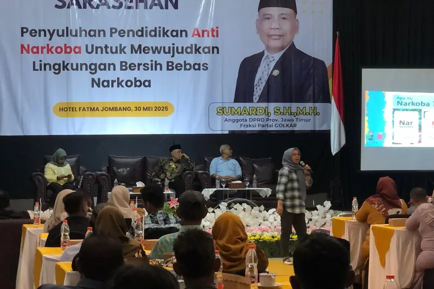 JOMBANG, IDEA JATIM—Anggota Dewan Perwakilan Rakyat Daerah (DPRD) Provinsi Jawa Timur, Sumardi menggandeng Badan Narkotika Nasional (BNN) Kota Mojokerto menggelar sarasehan bertajuk ‘Penyuluhan Pendidikan Anti Narkoba untuk Mewujudkan Lingkungan Bersih Bebas Narkoba’ di Jombang, Jumat (30/5/2025).