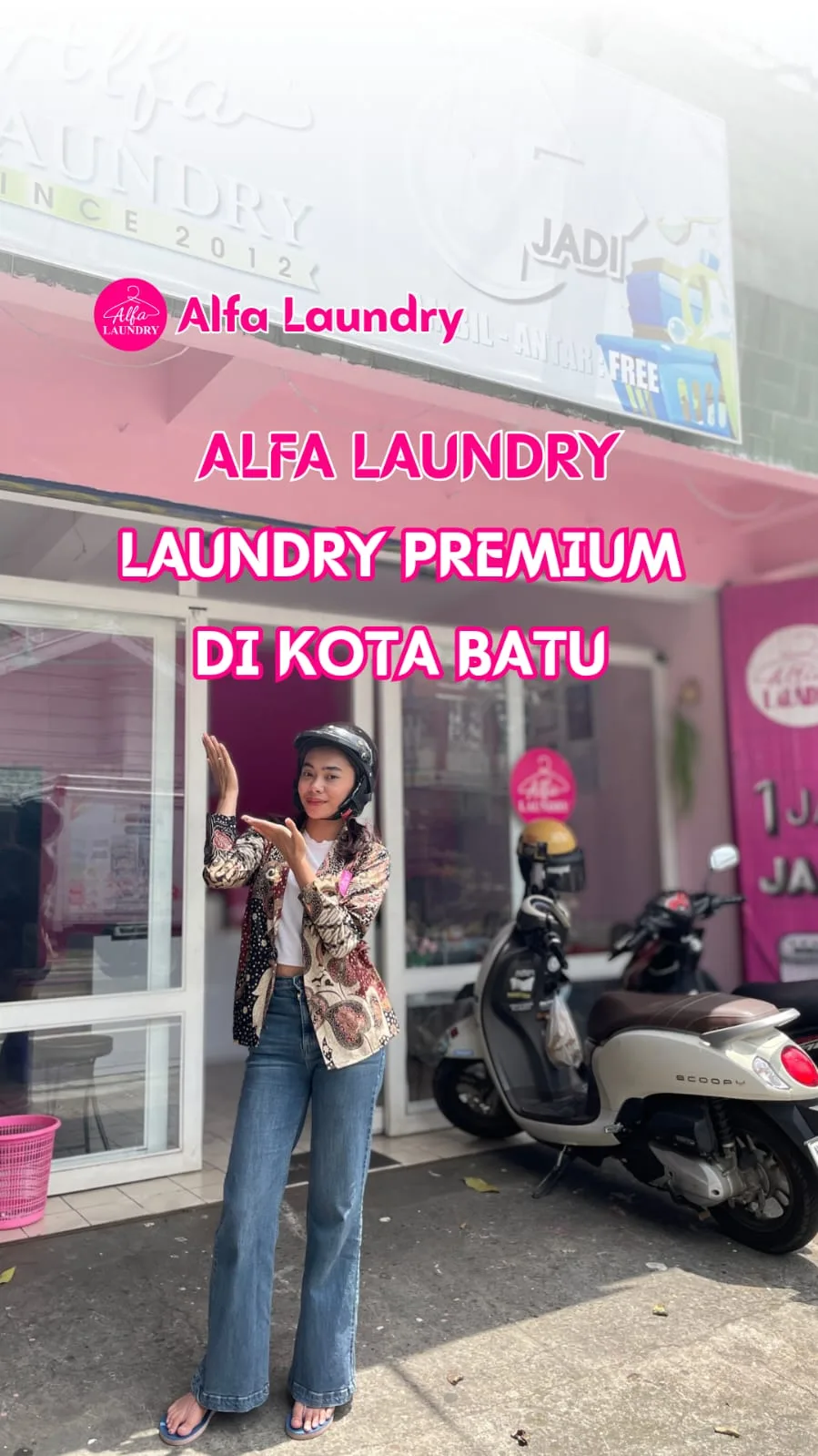 Berlokasi strategis di Jalan Pattimura 2A, Kelurahan Temas, Kecamatan Batu Alfa Laundry menawarkan inovasi yang jarang ditemui di tempat lain. Diantaranya layanan cuci kering yang selesai hanya dalam waktu satu jam.