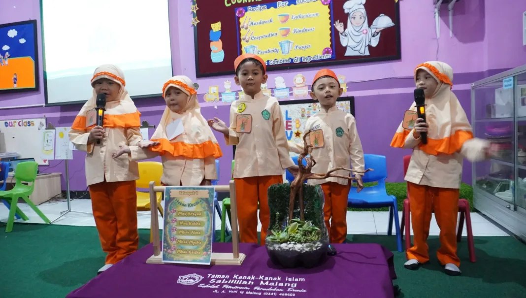 IDEA JATIM, MALANG – Siswa-siswi TK Islam Sabilillah Malang 1 tampil percaya diri di depan para orang tua. Mereka mempresentasikan hasil karyanya. Berbagai produk telah mereka buat sebagai hasil dari Projects Based Learning. Karya ini diharapkan kelak menjadi solusi dari berbagai persoalan lingkungan selama ini.