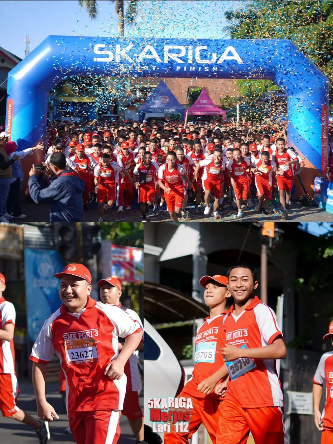 Ada 2.000 orang yang tumpah ruah di jalanan. Start dan finisnya di Plaza Merjosari. Tepat di depan kantor kelurahan. Mengapa di sana? Ada bumbu nostalgia. Lurah Merjosari ternyata mantan guru di Skariga. Klop.