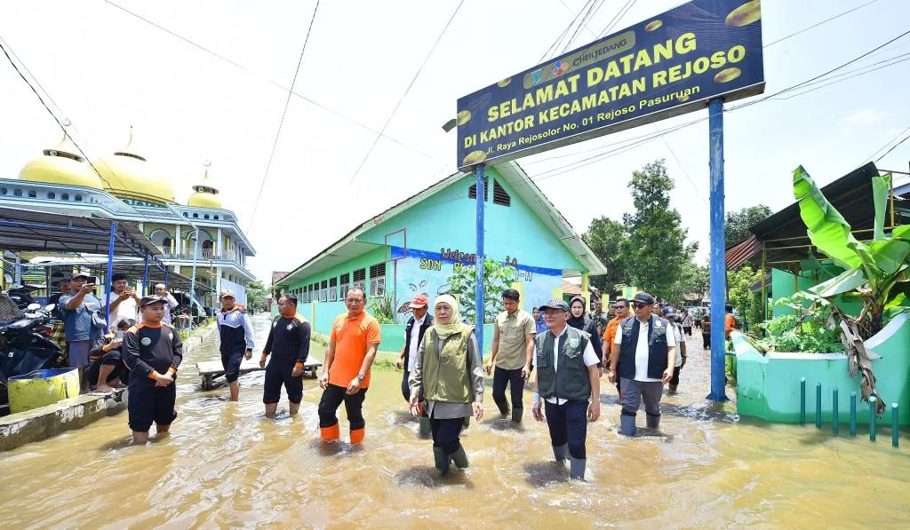 Menurut Khofifah, pompa air sulit difungsikan secara maksimal di wilayah seperti Rejoso karena ketinggian air sungai yang sejajar dengan genangan di permukiman warga.