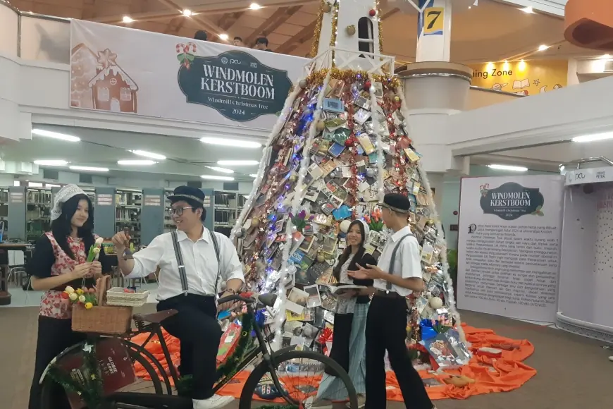 SURABAYA, IDEA JATIM – Menyambut Hari Natal 2024, Universitas Kristen Petra (UK Petra) atau PCU resmi meluncurkan “Windmolen Kerstboom”, sebuah Pohon Natal Kincir Angin yang tersusun dari ratusan koleksi perpustakaan, yang menjulang tinggi di area pameran Perpustakaan PCU.