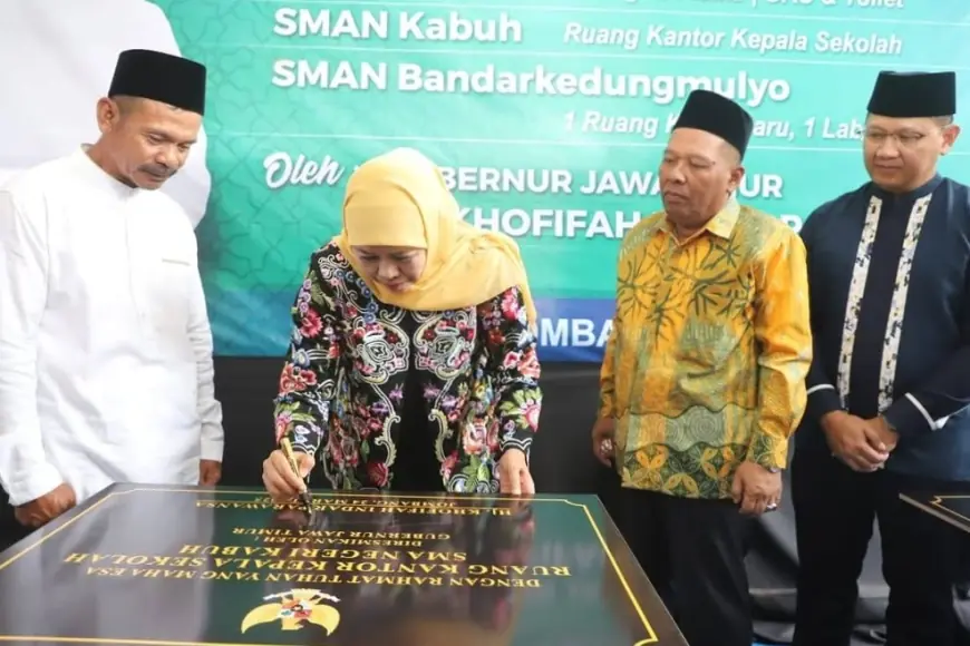 JOMBANG, IDEA JATIM – Gubernur Jawa Timur, Khofifah Indar Parawansa meresmikan sejumlah fasilitas sekolah baru yang ada di Kabupaten Jombang. Sejumlah fasilitas penunjang kegiatan belajar mengajar (KBM) diresmikan secara simbolis di SMKN 1 Jombang, Senin (24/3/2025).