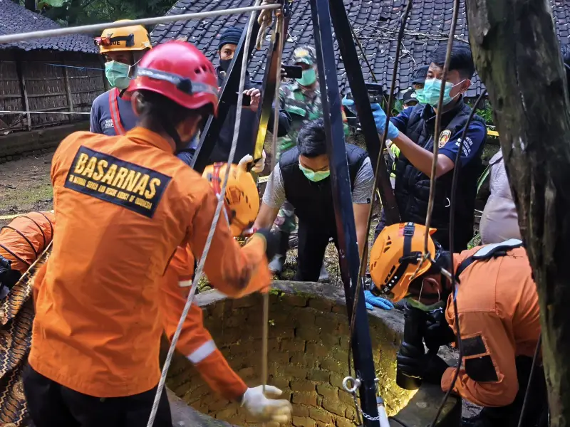 “Selain ruang yang sempit, terdapat potensi gas beracun di dalam sumur. Oleh karena itu, rescuer yang turun ke dalam sumur dilengkapi peralatan SCBA sebagai langkah mitigasi risiko,” kata Bayu.