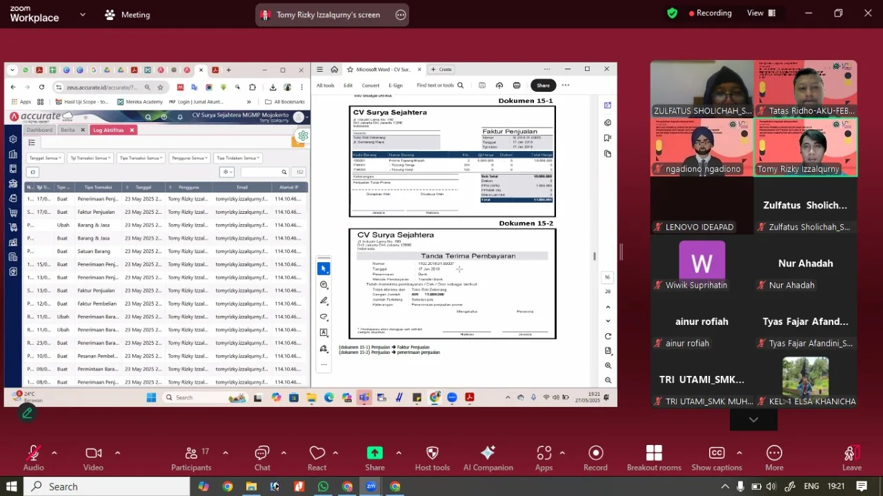 Pelatihan juga dilanjutkan secara online melalui Zoom yang menyajikan studi kasus pemanfaatan Accurate untuk akuntansi perusahaan dagang dan jasa. Metode hybrid ini diterapkan agar peserta memiliki fleksibilitas dalam menyerap materi dan menerapkannya langsung di kelas masing-masing.